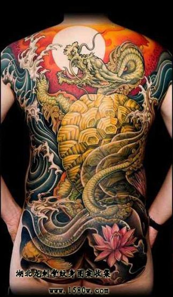 鼋纹身龙头龟满背纹身_龙纹身图案大全_纹身图吧