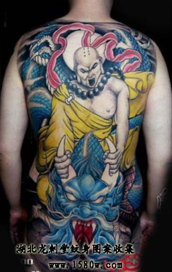 降龙罗汉满背纹身背部纹身_龙纹身图案大全_纹身图吧