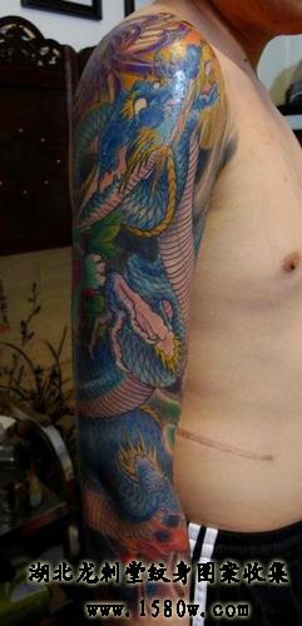 盘龙花臂纹身_龙纹身图案大全_纹身图吧