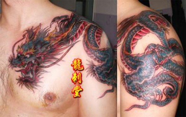 彩色过肩龙纹身_龙纹身图案大全_纹身图吧
