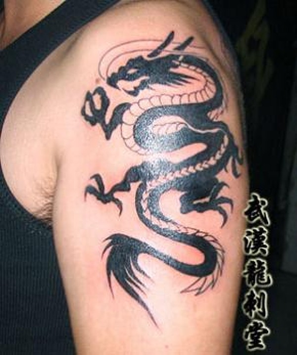 大臂图腾龙纹身为汉阳纹身顾客制作_龙纹身图案大全_纹身图吧