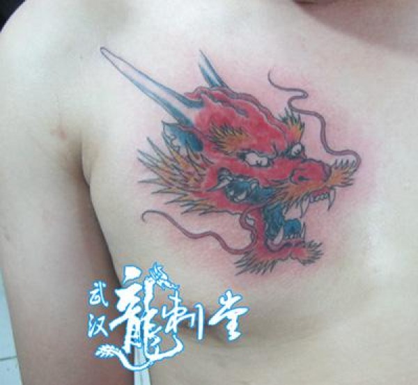 彩色龙头纹身_龙纹身图案大全_纹身图吧