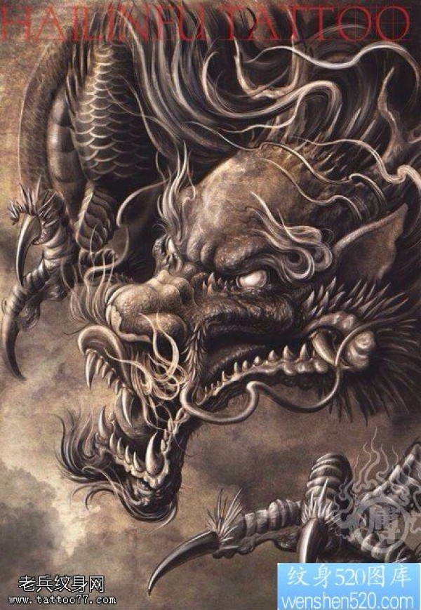 纹身520图库提供一款龙头纹身图案_龙纹身图案大全_纹身图吧