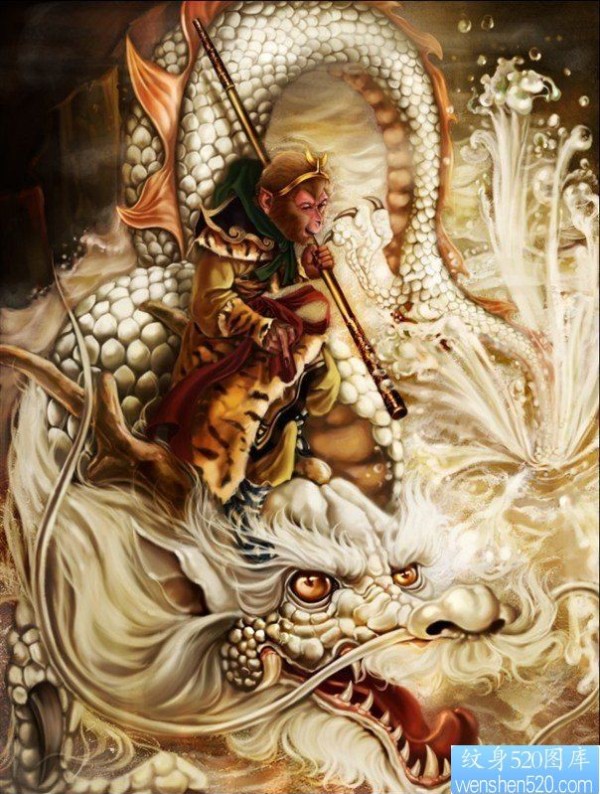 一幅适合做满背孙悟空龙的文身作品_龙纹身图案大全_纹身图吧