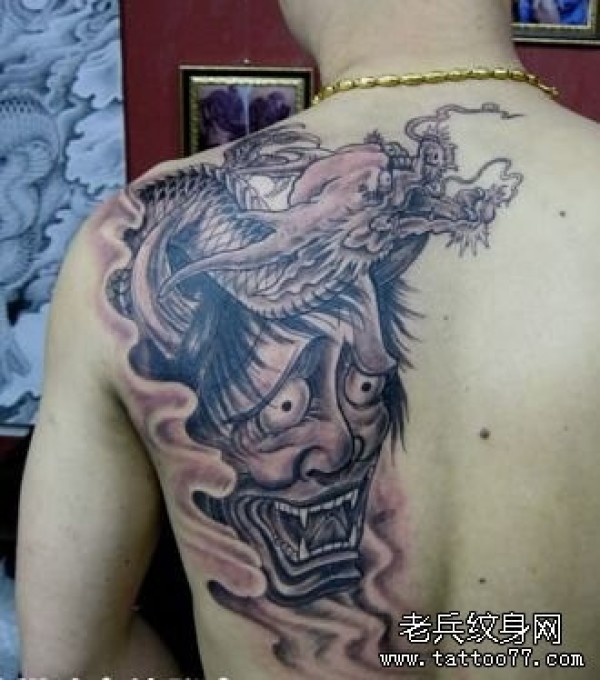 背部一幅般若龙纹身图片_龙纹身图案大全_纹身图吧