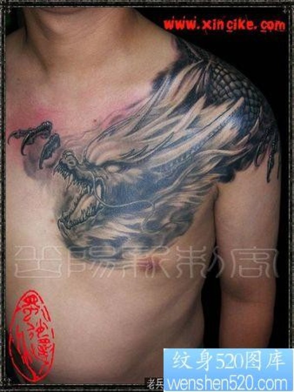 欧美披肩龙过肩龙龙头纹身图片纹身图案_龙纹身图案大全_纹身图吧