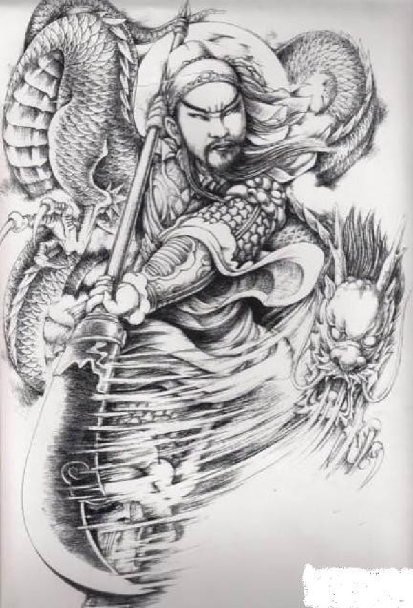 关二哥降龙素材_龙纹身图案大全_纹身图吧