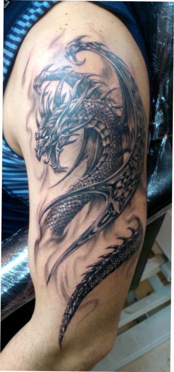 男士肩部霸气外露的中国龙纹身_龙纹身图案大全_纹身图吧