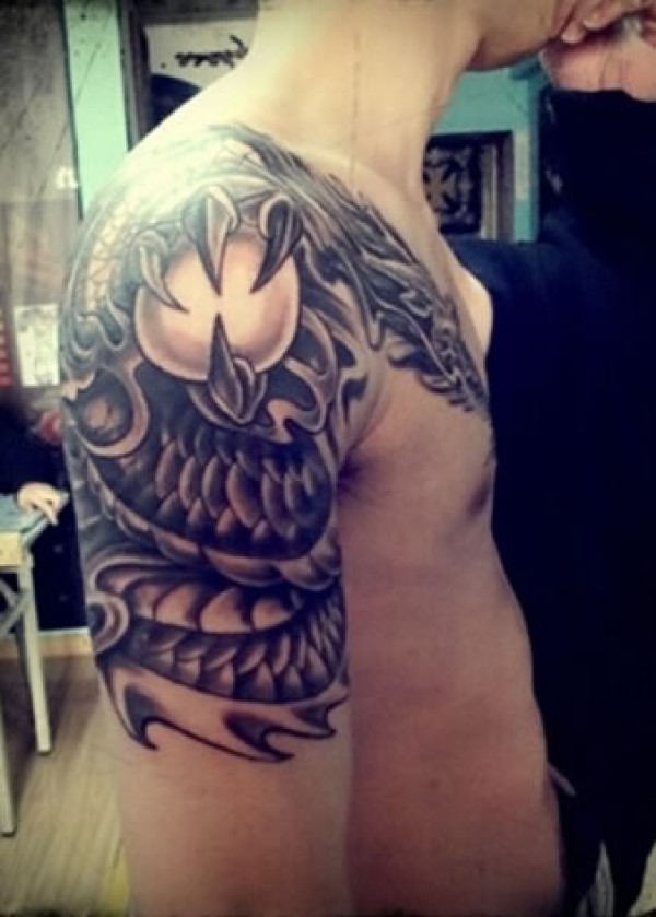 一组肩膀纹身图案欣赏盘踞在肩膀上的龙纹身_龙纹身图案大全_纹身图吧