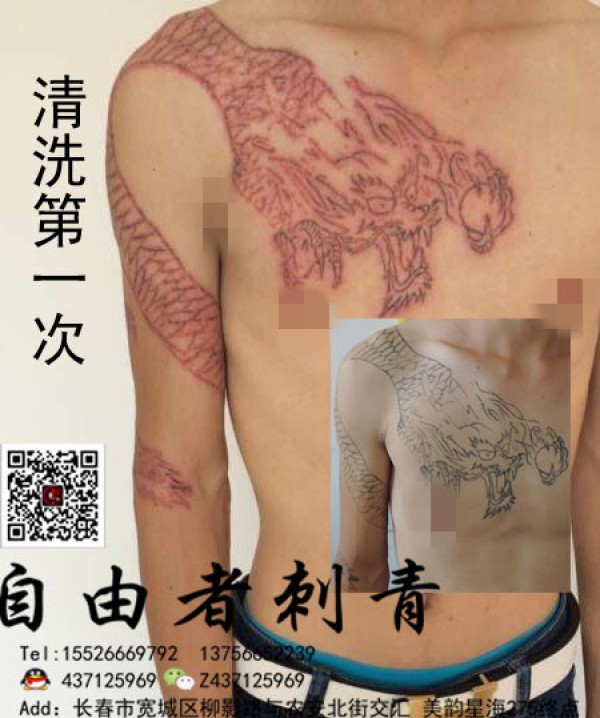 龙纹身图案清洗过程胸部过肩龙纹身图案清洗_龙纹身图案大全_纹身图吧