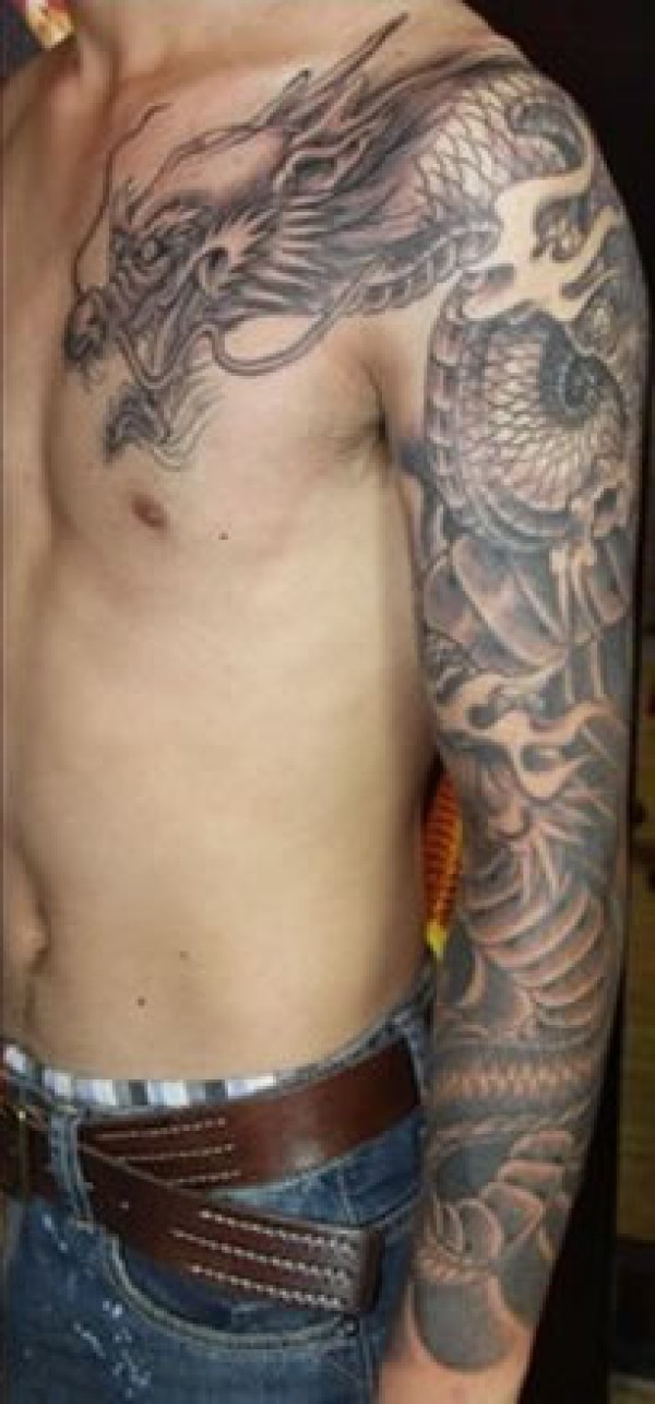 素色满臂过肩龙纹身图这款素色缠臂过肩龙纹身_龙纹身图案大全_纹身图吧