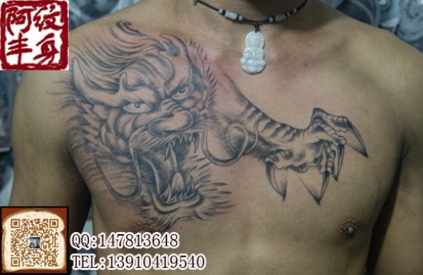 非常霸道犀利的胸前利爪龙纹身图案龙纹身图案_龙纹身图案大全_纹身图吧