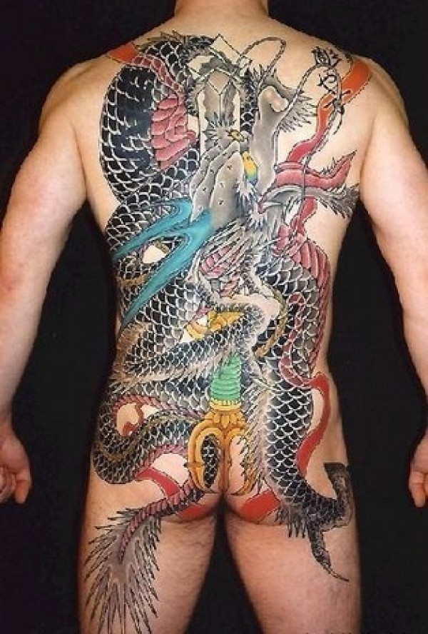 后背超长体形的彩绘龙纹身图案可能是纹身的涂_龙纹身图案大全_纹身图吧