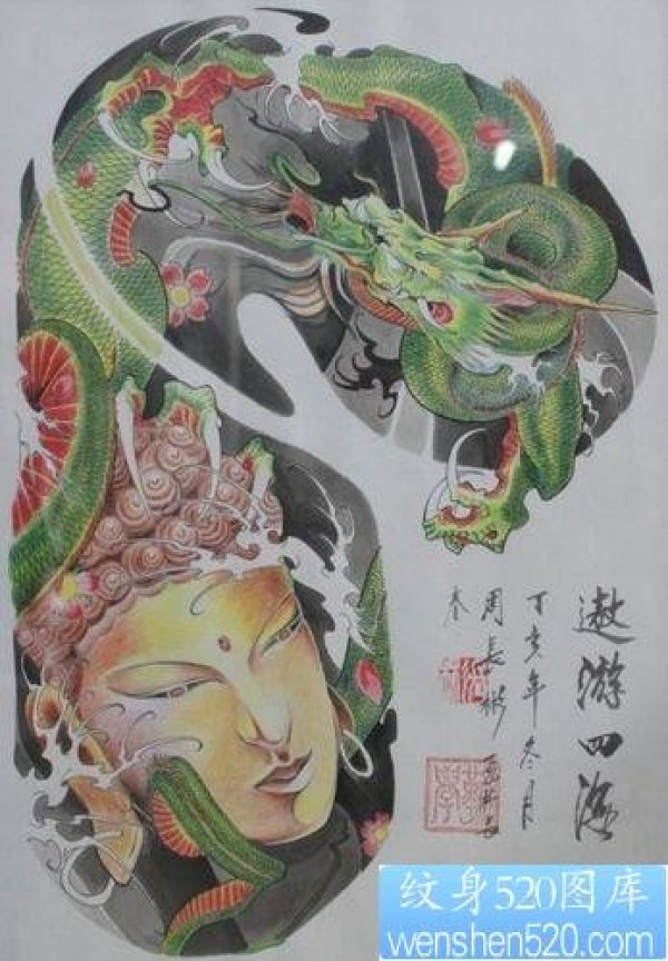 半甲纹身图片半甲龙佛头佛像纹身图片纹身作_龙纹身图案大全_纹身图吧