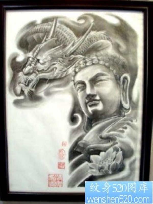 半甲纹身图片半甲披肩龙佛头佛像莲花纹身图_龙纹身图案大全_纹身图吧