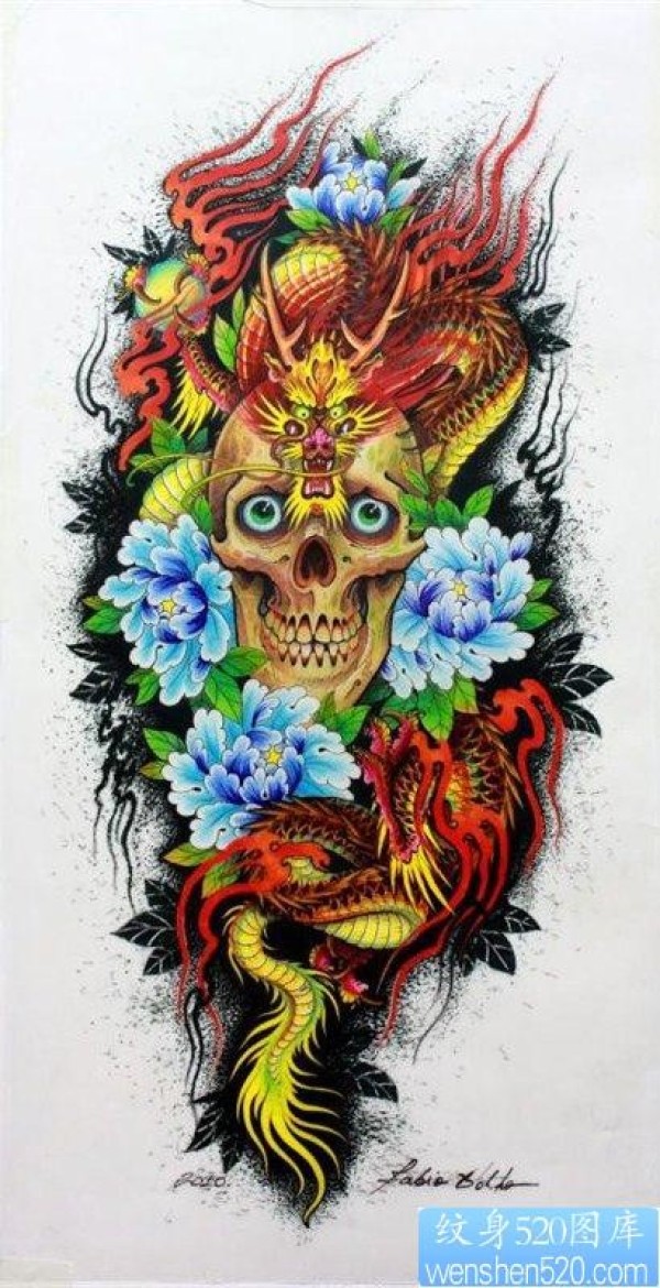 屌爆超帅的满背龙与骷髅纹身手稿_龙纹身图案大全_纹身图吧