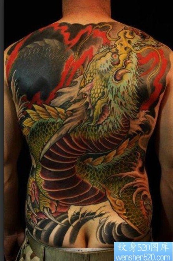 潮流很帅的一幅传统满背龙纹身图片_龙纹身图案大全_纹身图吧