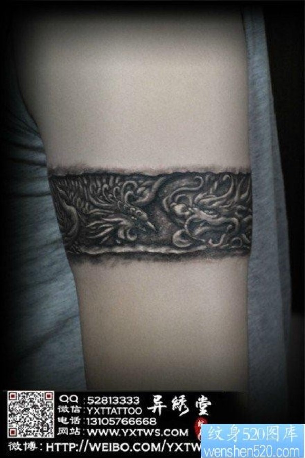 手臂一幅时尚经典的石雕龙与凤凰纹身图片_龙纹身图案大全_纹身图吧