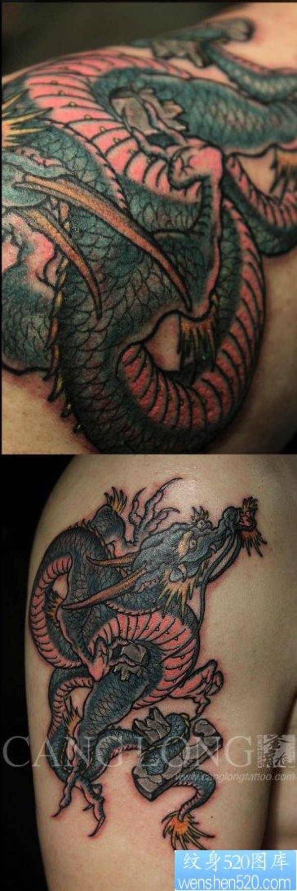 手臂经典很帅的传统龙纹身图片_龙纹身图案大全_纹身图吧