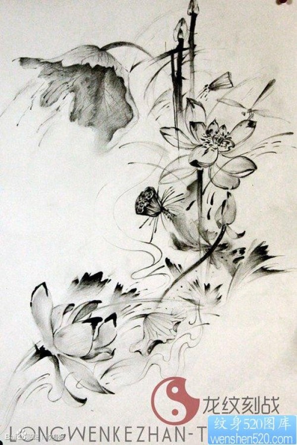 一组潮流精美的水墨莲花纹身手稿_龙纹身图案大全_纹身图吧