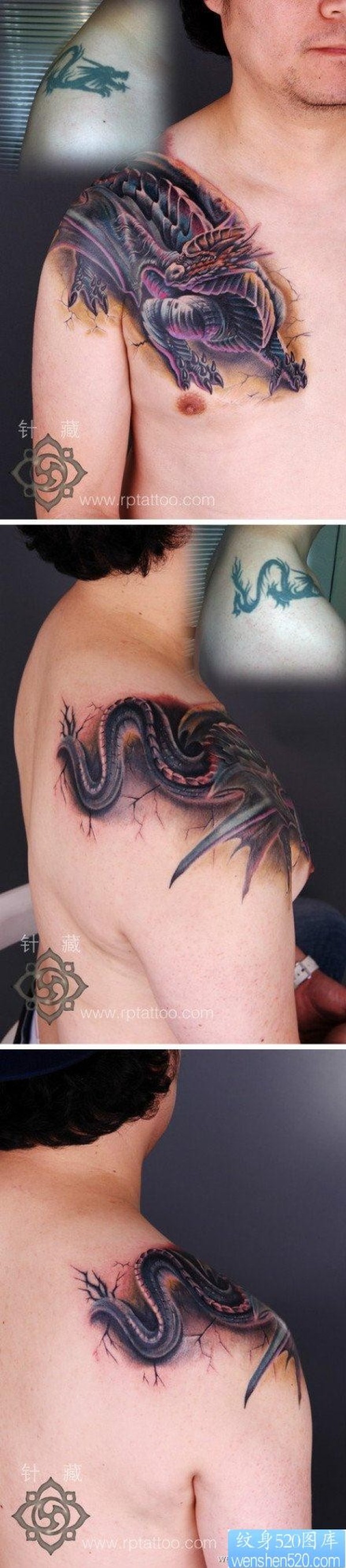 男生前胸到背部超酷的过肩欧美龙纹身图片_龙纹身图案大全_纹身图吧