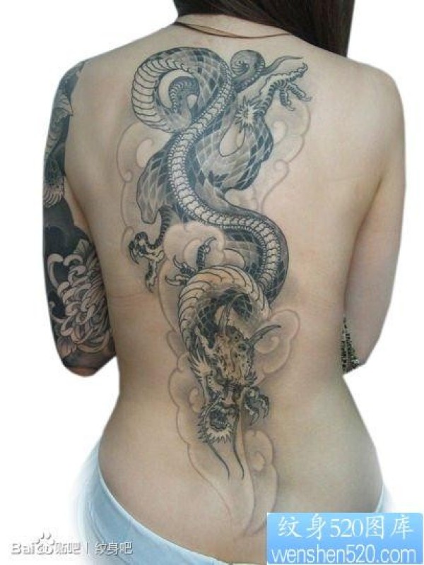 女人后背经典帅气的传统龙纹身图片_龙纹身图案大全_纹身图吧