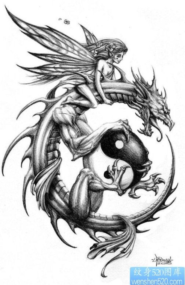 经典潮流的欧美龙与精灵纹身图片_龙纹身图案大全_纹身图吧