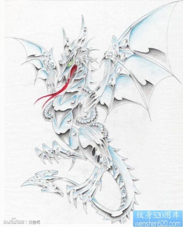超牛经典的一幅机械龙纹身图片_龙纹身图案大全_纹身图吧