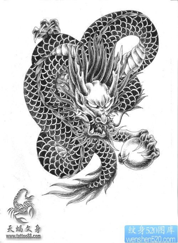 经典帅气的黑灰龙纹身手稿_龙纹身图案大全_纹身图吧
