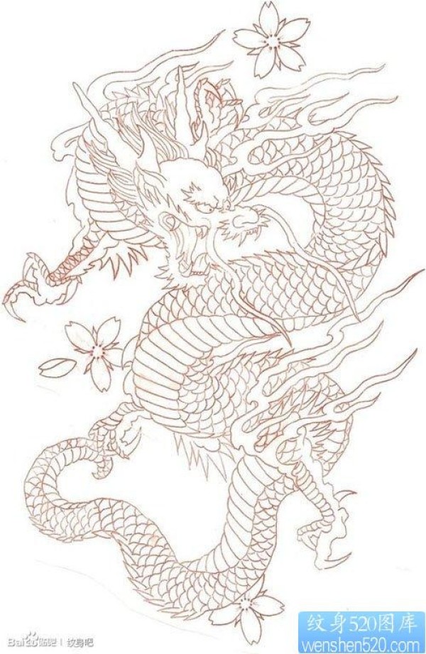 男生喜欢的经典的满背线条龙纹身手稿_龙纹身图案大全_纹身图吧