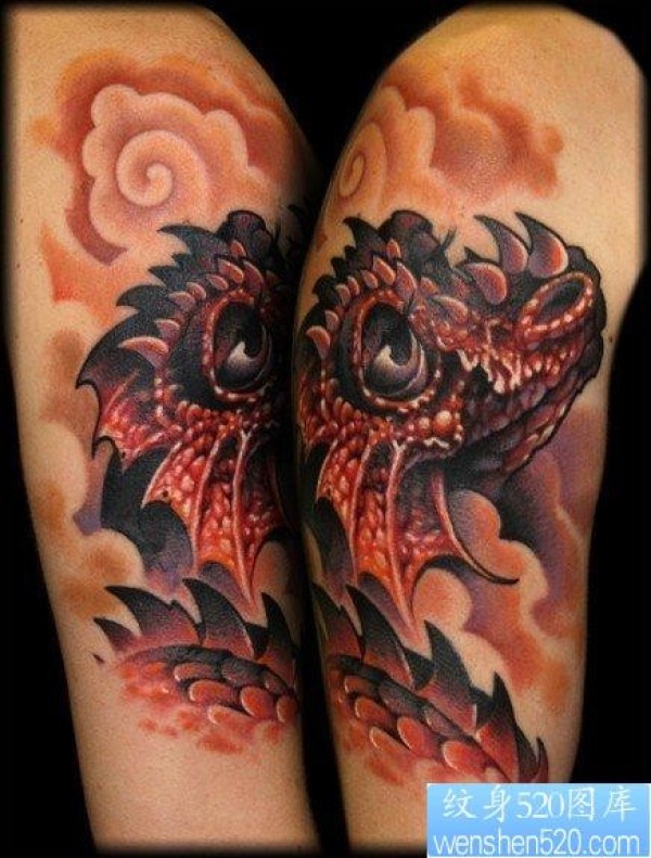 手臂一幅经典时尚的欧美龙纹身图片_龙纹身图案大全_纹身图吧