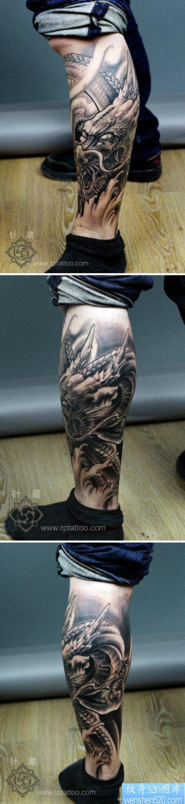 男生腿部帅气潮流的盘腿龙纹身图片_龙纹身图案大全_纹身图吧