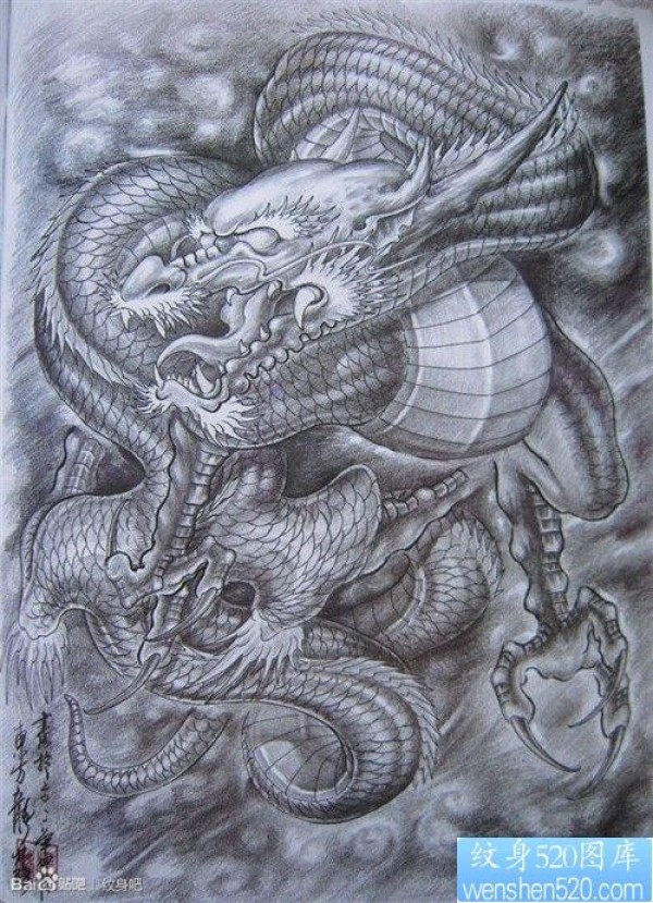 龙纹身手稿_一组老传统黑灰龙手稿纹身图案