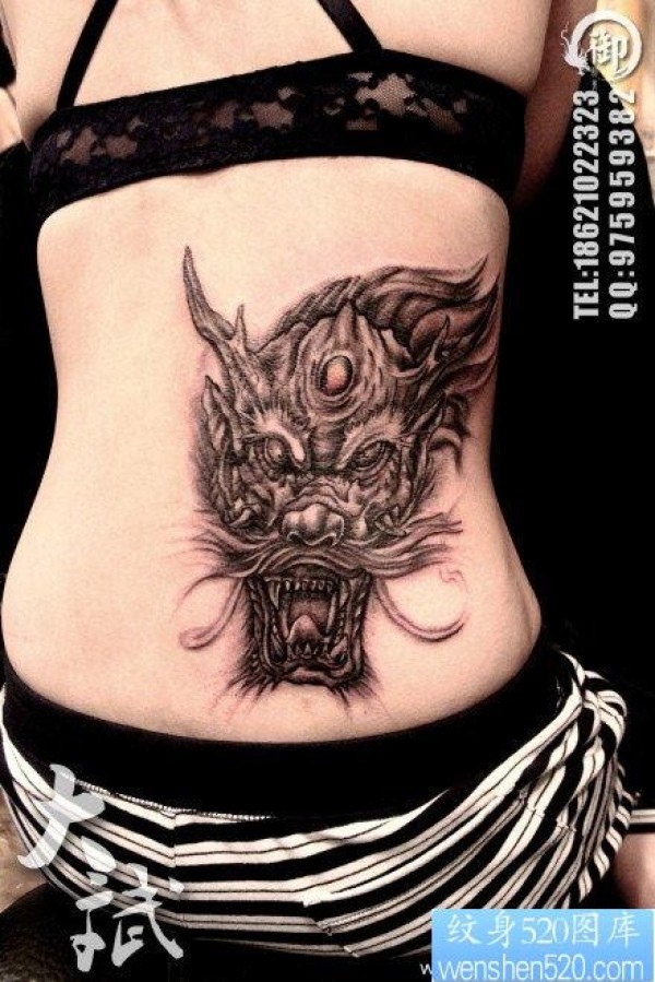 美女腰部霸气的龙头纹身图片_龙纹身图案大全_纹身图吧