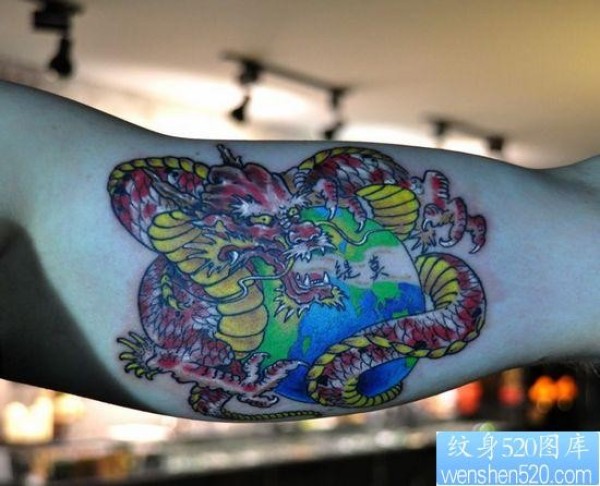 一幅手臂内侧彩色龙纹身图片_龙纹身图案大全_纹身图吧