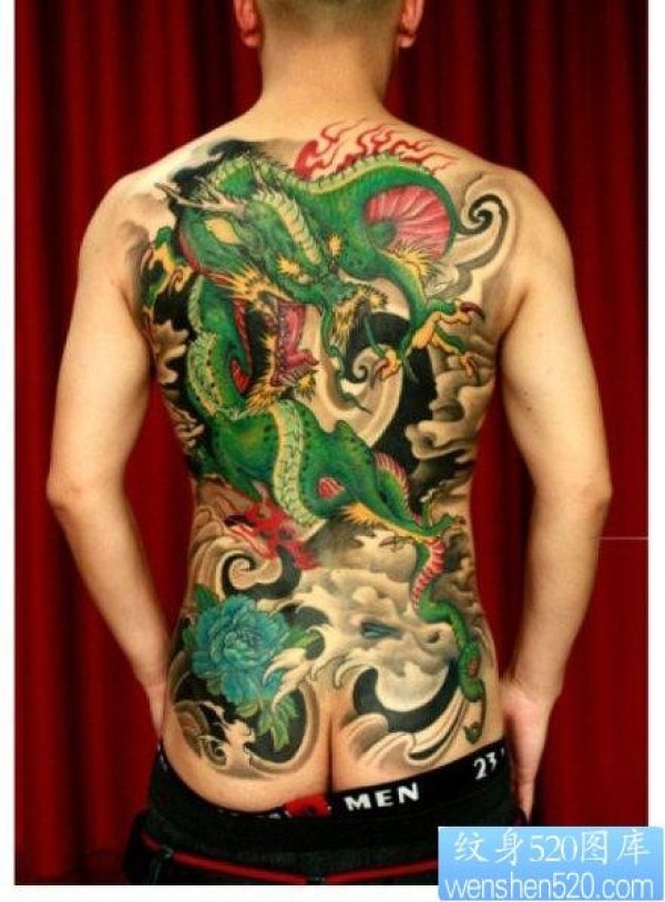 男生背部帅气经典的满背龙纹身图片_龙纹身图案大全_纹身图吧