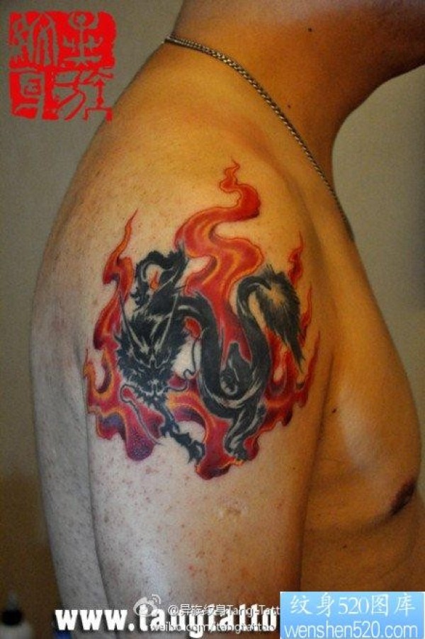 男人手臂帅气好看的图腾龙鱼火焰纹身图片_龙纹身图案大全_纹身图吧
