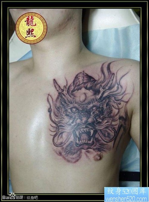 霸气的男人胸部龙头纹身图片_龙纹身图案大全_纹身图吧