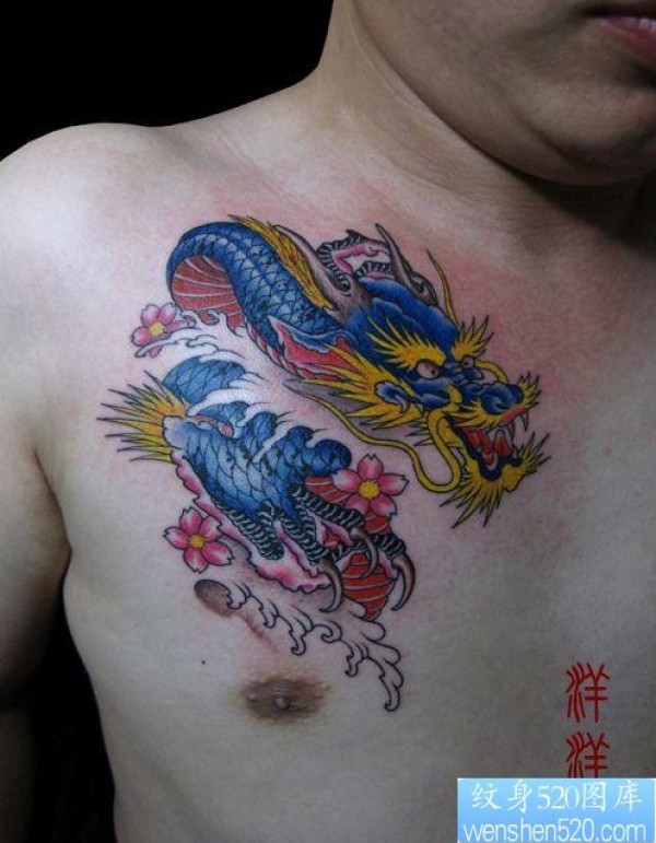 女人喜欢的胸部彩色龙纹身图片_龙纹身图案大全_纹身图吧