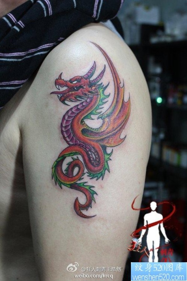 男生手臂好看的彩色欧美龙纹身图片_龙纹身图案大全_纹身图吧