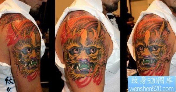 大臂好看经典的彩色龙头纹身图片_龙纹身图案大全_纹身图吧