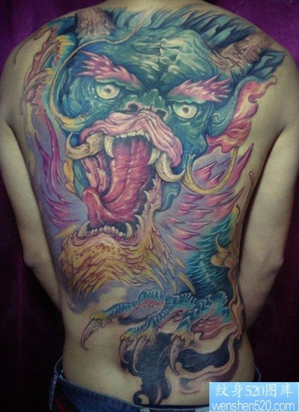 超酷的满背彩色龙头纹身图片_龙纹身图案大全_纹身图吧