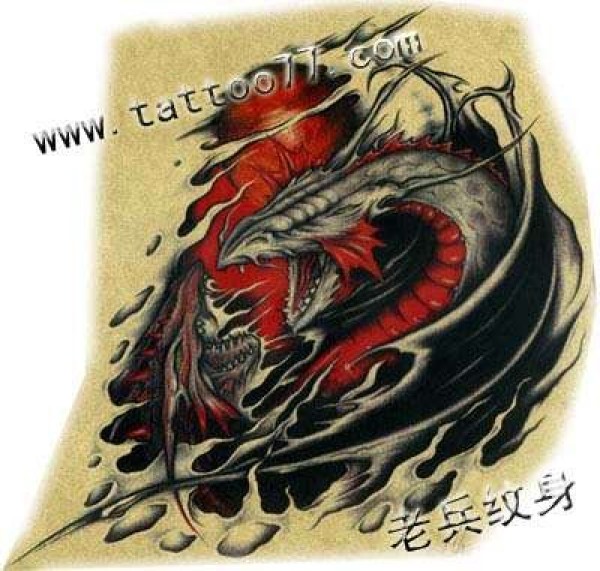 一幅经典的欧美撕皮飞龙翼龙纹身图片作品_龙纹身图案大全_纹身图吧