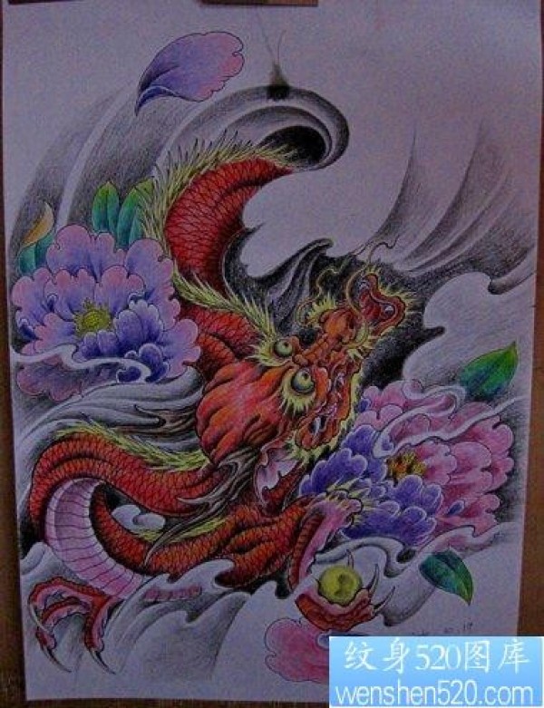 龙纹身图片彩色龙牡丹纹身图片纹身作品_龙纹身图案大全_纹身图吧