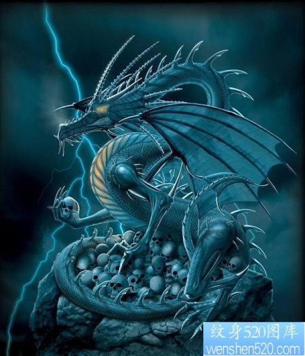 欧美翼龙骷髅纹身图片作品_龙纹身图案大全_纹身图吧