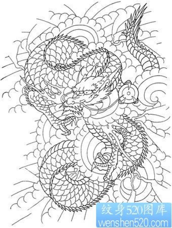高清日式传统满背龙割线纹身图片作品_龙纹身图案大全_纹身图吧