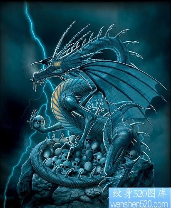 欧美翼龙骷髅纹身图片_龙纹身图案大全_纹身图吧