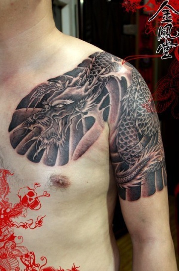 龙纹身半甲,金凤堂作品_龙纹身图案大全_纹身图吧
