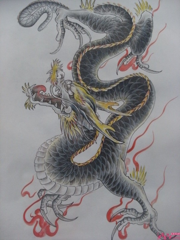 彩色的龙纹身手稿_龙纹身图案大全_纹身图吧