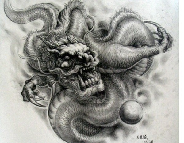 立体感很强的龙形纹身手稿_龙纹身图案大全_纹身图吧